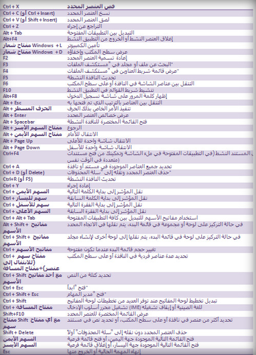 جميع إختصارات الكيبورد أو لوحة المفاتيح