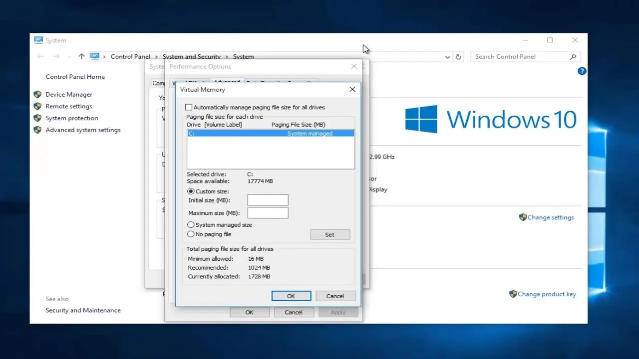 كيفية تغير حجم الذاكرة الافتراضية في ويندوز Windows 10