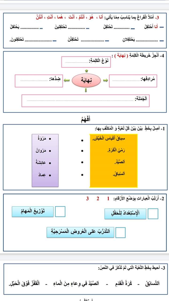 أنشطة الدعم في اللغة العربية للمستويين الخامس والسادس ابتدائي