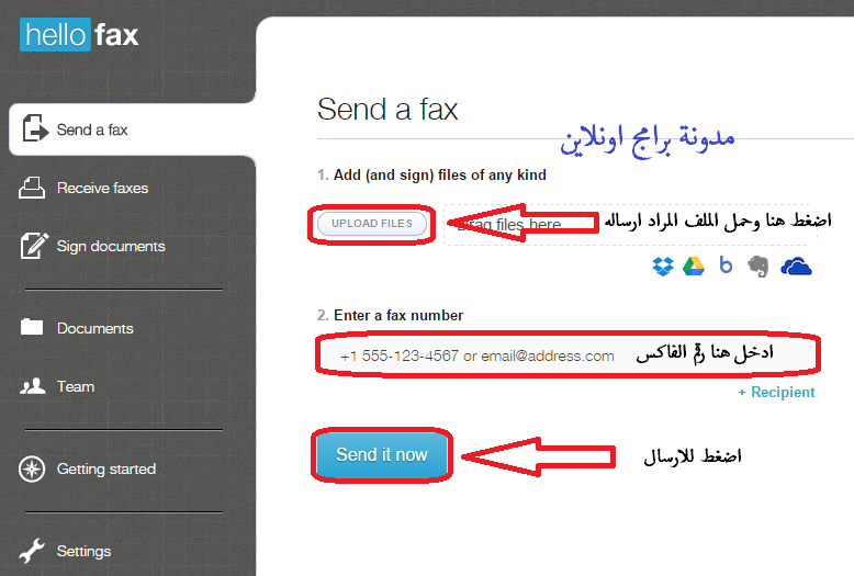 طريقة ارسال فاكس من الانترنت الى كافة انحاء العالم مجانا
