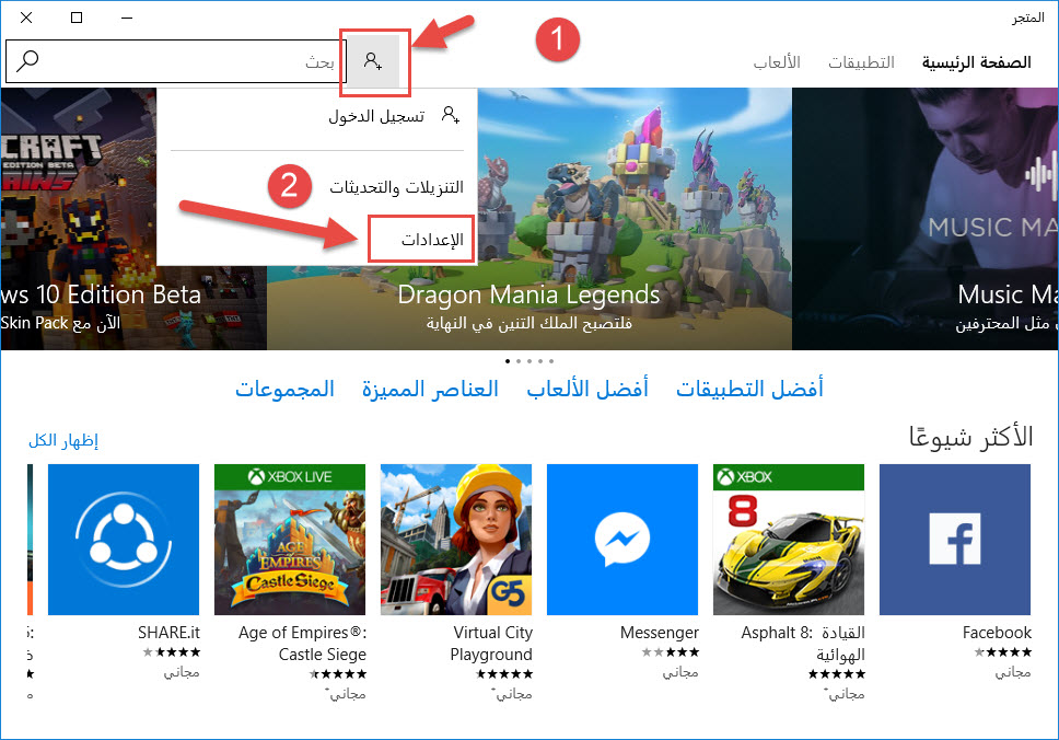 متجر ويندوز 10 للكمبيوتر
